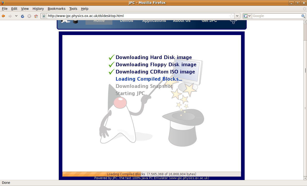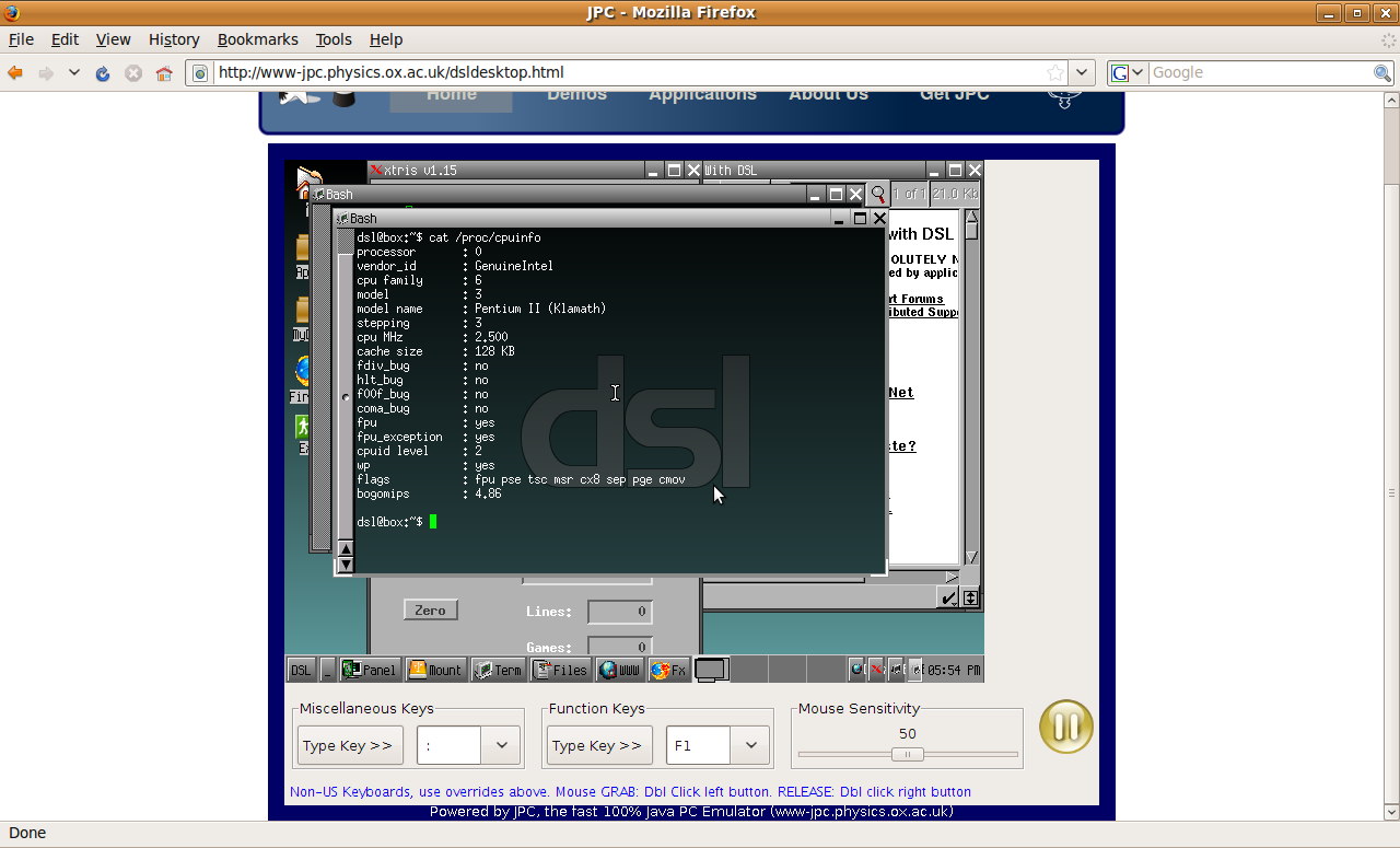 Yaptığım araştırma ve incelemeler sonrasında sanal makinayı DSL (Damn Small Linux) ile kendi sitesi üzerinden web browser içinden applet olarak test ettim. Performansı oldukça başarısızdı. Ancak yine de Java dili ile x86 makina yapılabilmiş olması ve Linux işletim sistemini grafiksel kullanıcı arabirimi ile kullandırabiliyor olması Java dilinin gücünü göstermektedir.